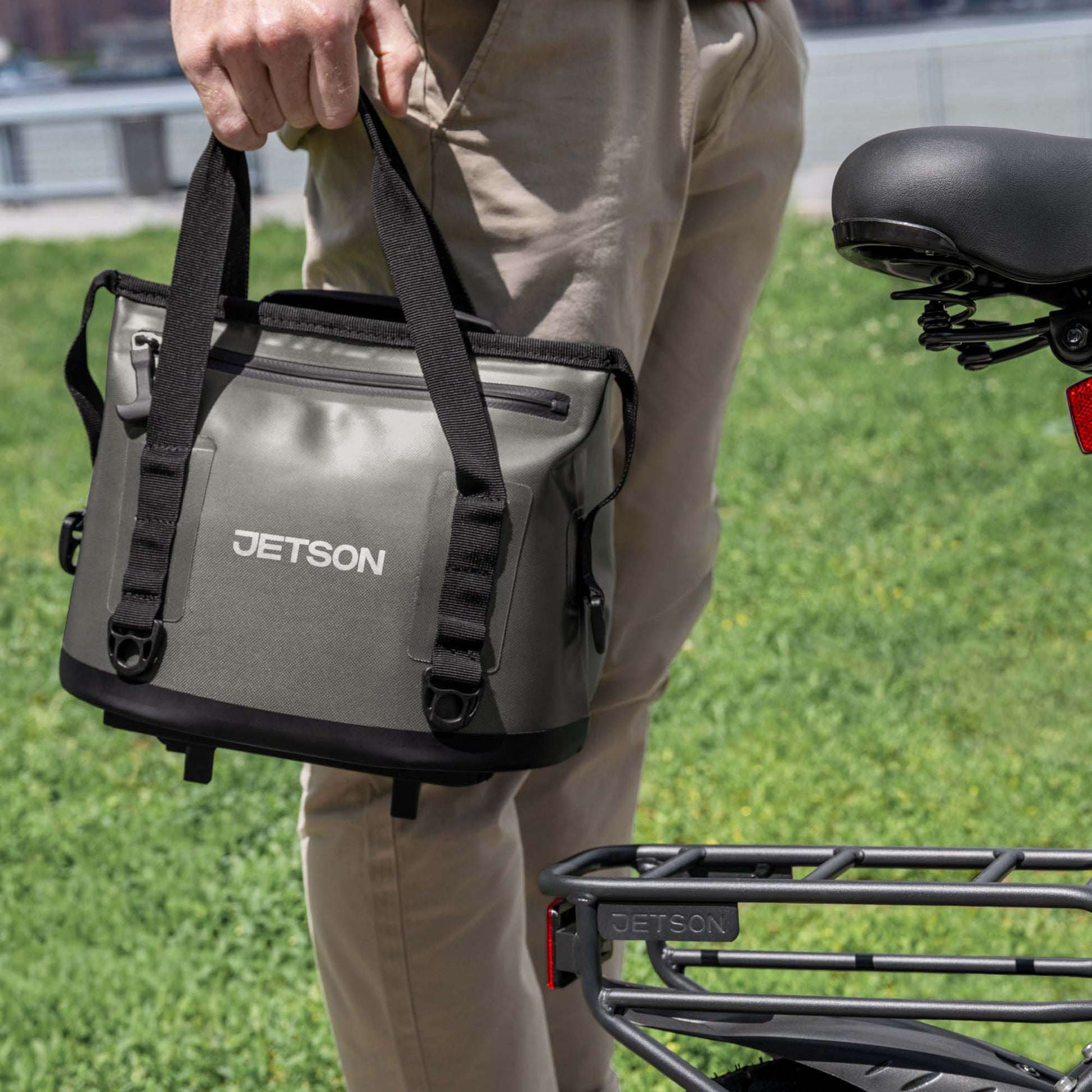 *Only compatible with the RackIt rear cargo racks found on select Jetson e-bikes. Consult your model’s user manual to see if the rack on your bike is part of the RackIt system.